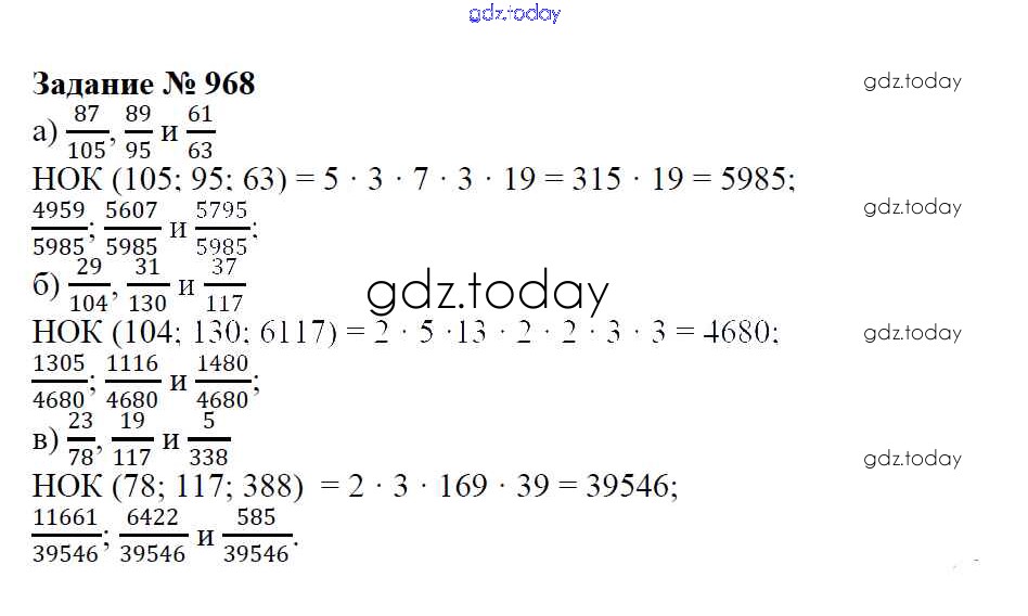 На страницах сайта gdz.today вы найдете учебный и вспомогательный материал, направленный на улучшения знаний школьной программы. ГДЗ - онлайн мир знаний Решение к упражнениям 968 Учебнику по Математике для 6 класса Зубарева, Мордкович Мнемозина 2015