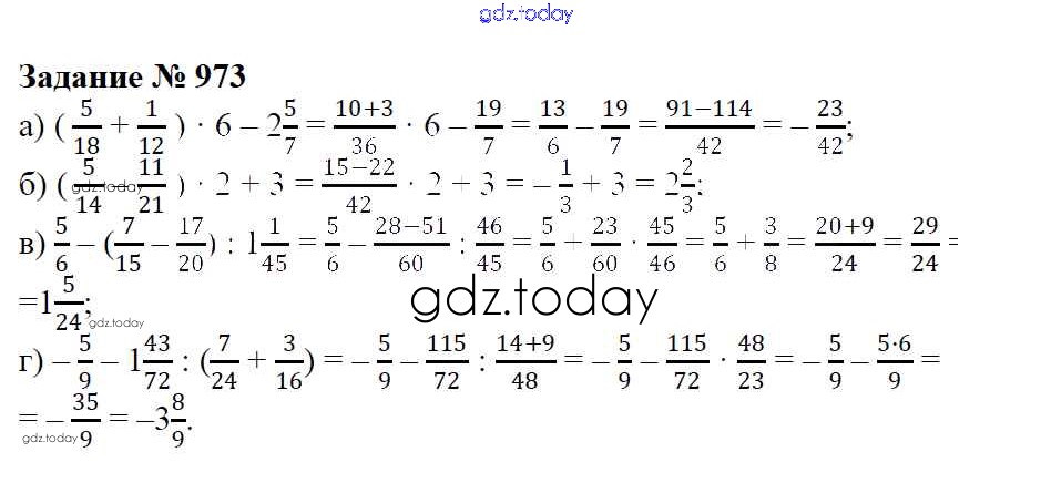 Ответы к Решение к упражнениям 973 Учебнику по Математике для 6 класса Зубарева, Мордкович Мнемозина 2015