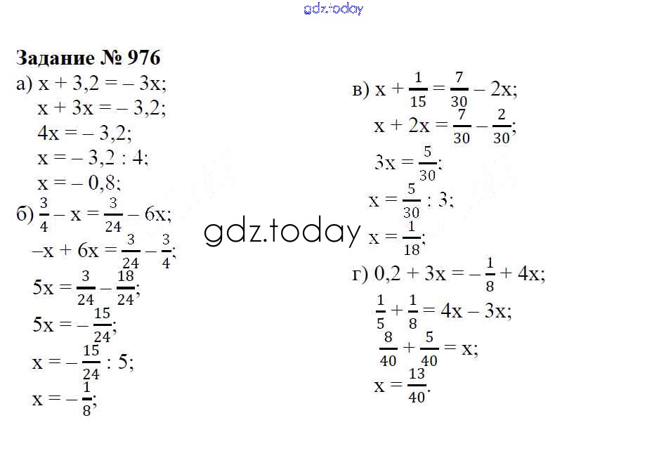 Ответы к Решение к упражнениям 976 Учебнику по Математике для 6 класса Зубарева, Мордкович Мнемозина 2015