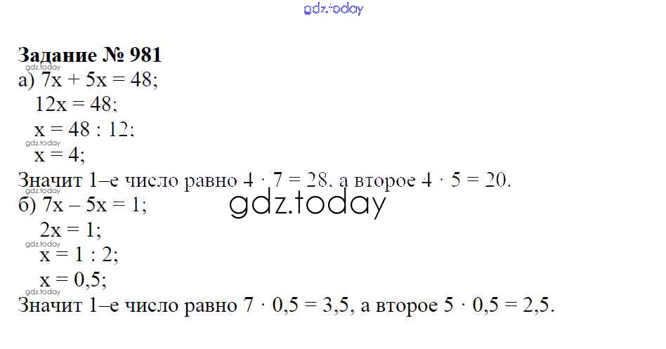 Ответы к Решение к упражнениям 981 Учебнику по Математике для 6 класса Зубарева, Мордкович Мнемозина 2015
