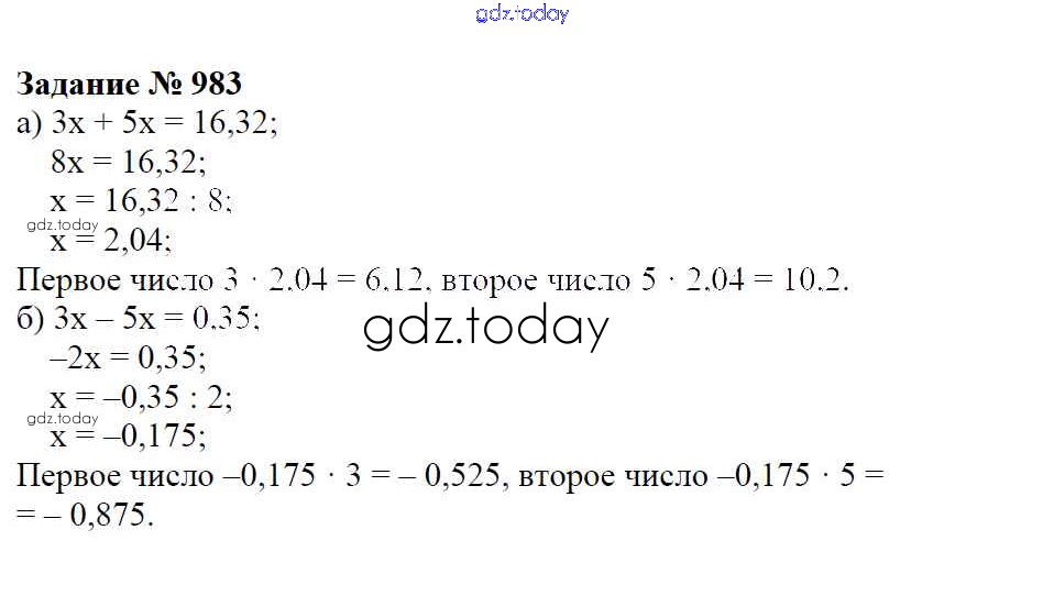 Ответы к Решение к упражнениям 983 Учебнику по Математике для 6 класса Зубарева, Мордкович Мнемозина 2015