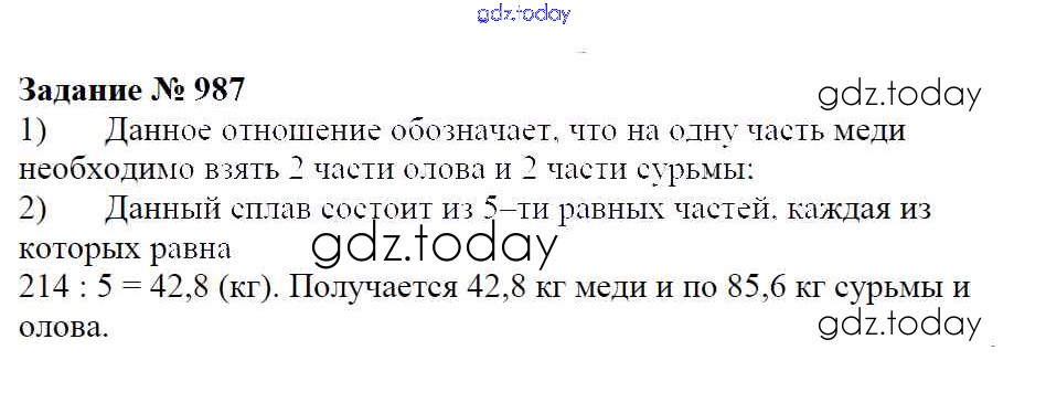 Ответы к Решение к упражнениям 987 Учебнику по Математике для 6 класса Зубарева, Мордкович Мнемозина 2015