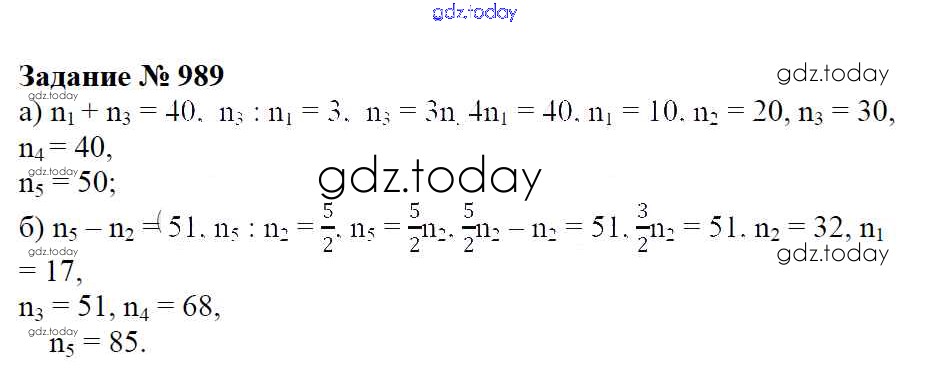 Ответы к Решение к упражнениям 989 Учебнику по Математике для 6 класса Зубарева, Мордкович Мнемозина 2015