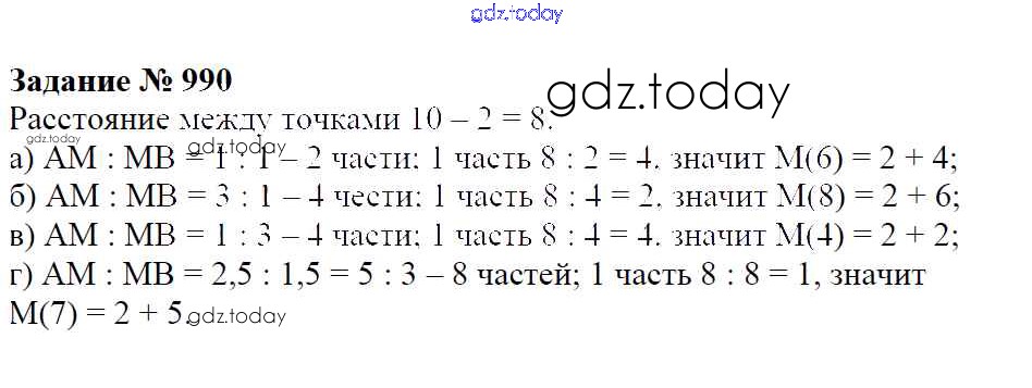 Ответы к Решение к упражнениям 990 Учебнику по Математике для 6 класса Зубарева, Мордкович Мнемозина 2015