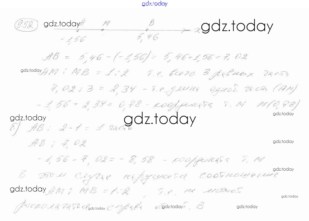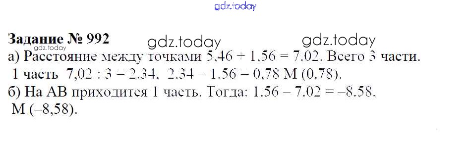Ответы к Решение к упражнениям 992 Учебнику по Математике для 6 класса Зубарева, Мордкович Мнемозина 2015