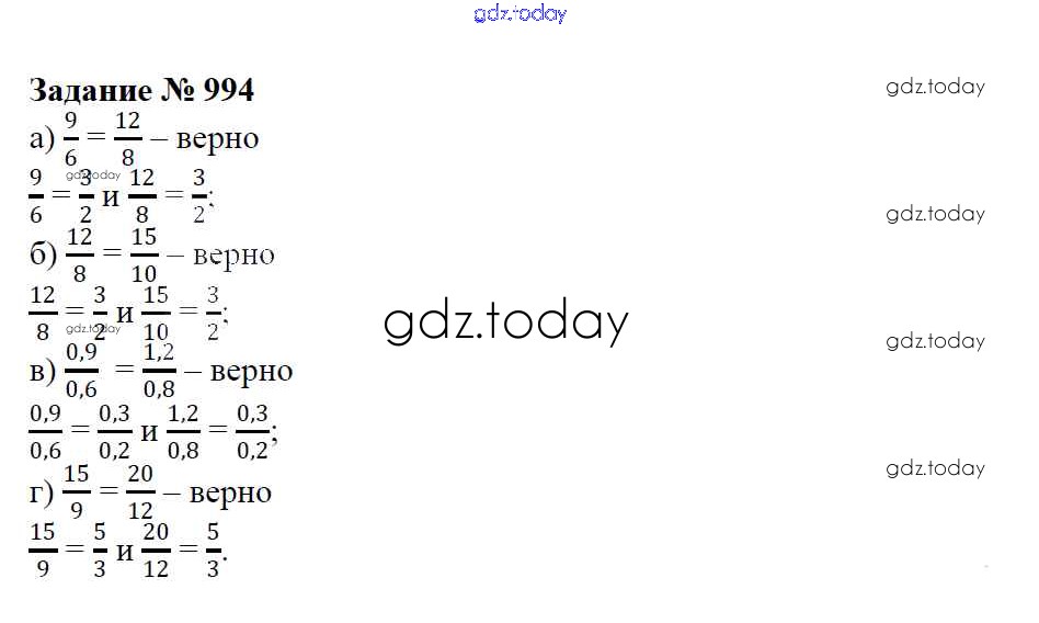 На страницах сайта gdz.today вы найдете учебный и вспомогательный материал, направленный на улучшения знаний школьной программы. ГДЗ - онлайн мир знаний Решение к упражнениям 994 Учебнику по Математике для 6 класса Зубарева, Мордкович Мнемозина 2015