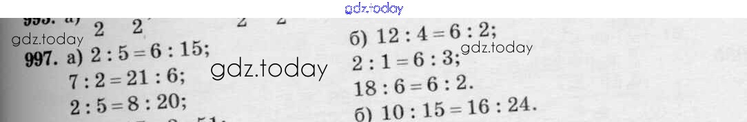 Ответы к Решение к упражнениям 997 Учебнику по Математике для 6 класса Зубарева, Мордкович Мнемозина 2015