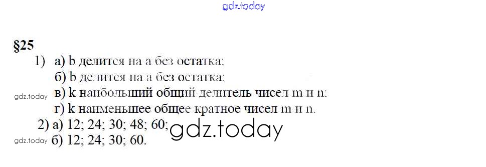 На страницах сайта gdz.today вы найдете учебный и вспомогательный материал, направленный на улучшения знаний школьной программы. ГДЗ - онлайн мир знаний Решение к контрольным вопросам и заданиям 25 Учебнику по Математике для 6 класса Зубарева, Мордкович Мнемозина 2015