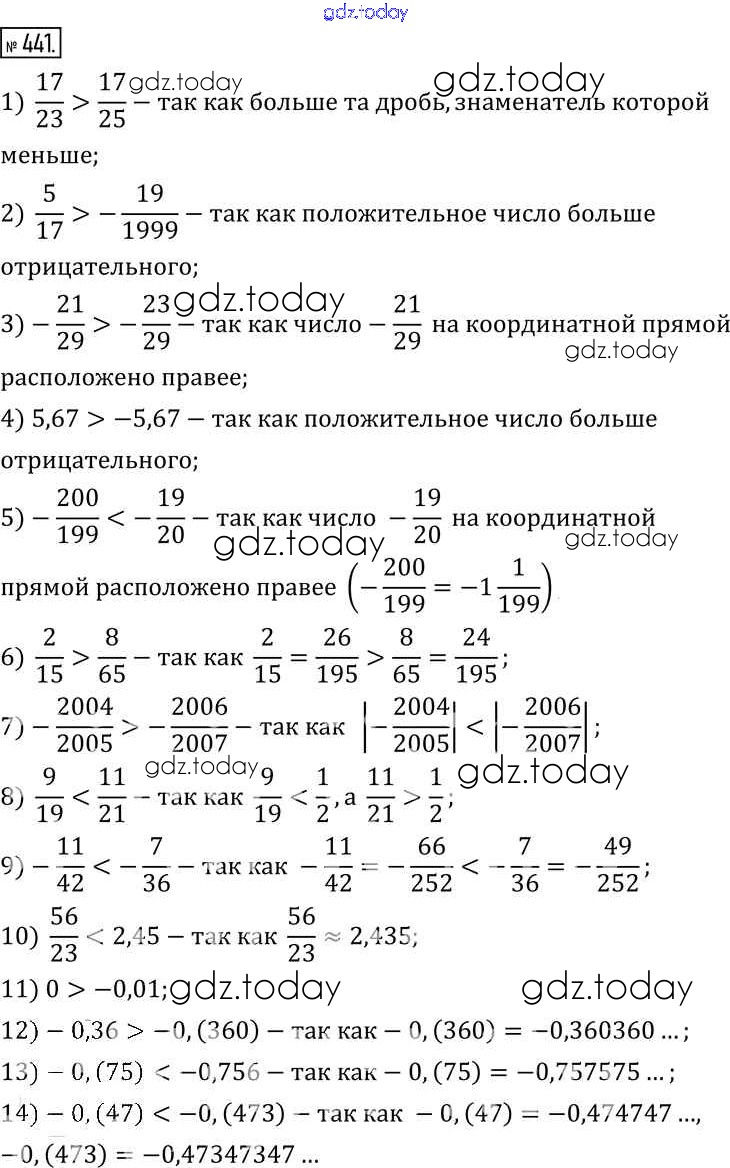 Ответы к Решения к задачам 441 Учебнику по Математике для 6 класса Муравин, Муравина Дрофа Вертикаль 2016