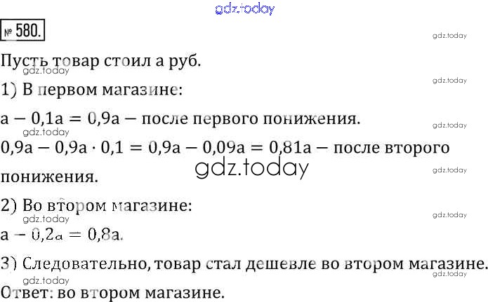 Ответы к Решения к задачам 580 Учебнику по Математике для 6 класса Муравин, Муравина Дрофа Вертикаль 2016