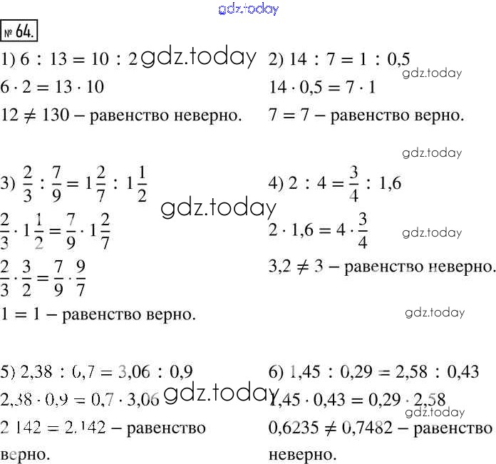Ответы к Решения к задачам 64 Учебнику по Математике для 6 класса Муравин, Муравина Дрофа Вертикаль 2016