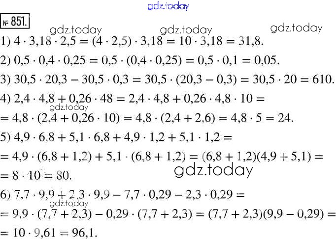 Ответы к Решения к задачам 851 Учебнику по Математике для 6 класса Муравин, Муравина Дрофа Вертикаль 2016