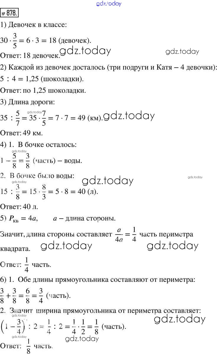 На страницах сайта gdz.today вы найдете учебный и вспомогательный материал, направленный на улучшения знаний школьной программы. ГДЗ - онлайн мир знаний Решения к задачам 878 Учебнику по Математике для 6 класса Муравин, Муравина Дрофа Вертикаль 2016