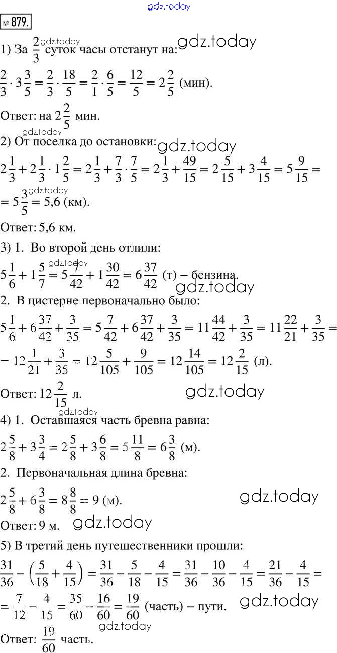 На страницах сайта gdz.today вы найдете учебный и вспомогательный материал, направленный на улучшения знаний школьной программы. ГДЗ - онлайн мир знаний Решения к задачам 879 Учебнику по Математике для 6 класса Муравин, Муравина Дрофа Вертикаль 2016