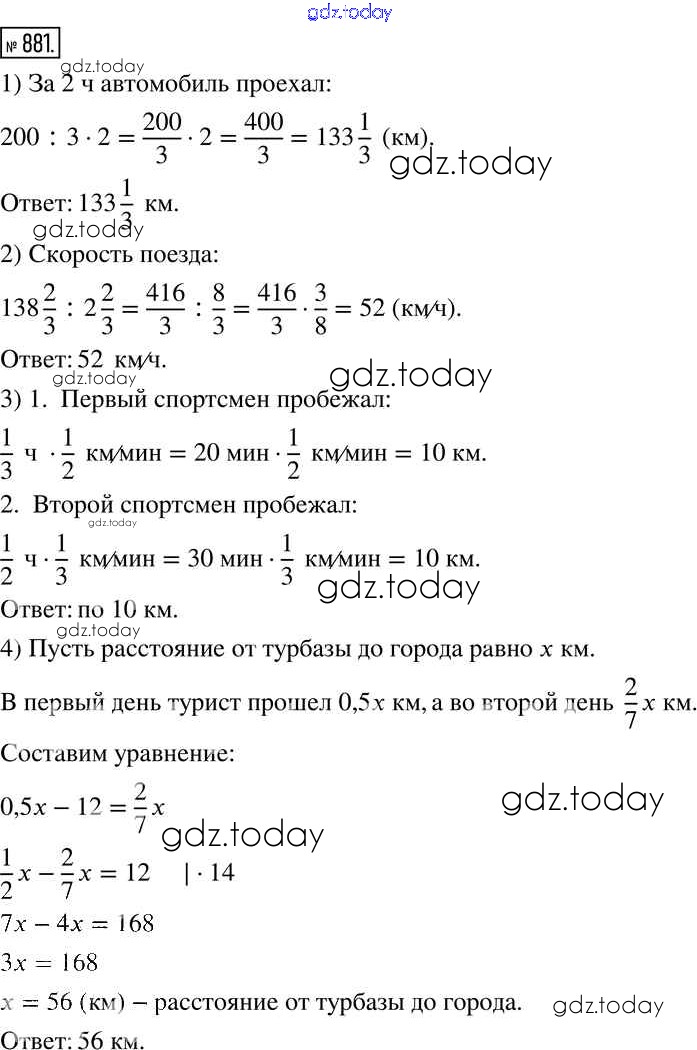 На страницах сайта gdz.today вы найдете учебный и вспомогательный материал, направленный на улучшения знаний школьной программы. ГДЗ - онлайн мир знаний Решения к задачам 881 Учебнику по Математике для 6 класса Муравин, Муравина Дрофа Вертикаль 2016