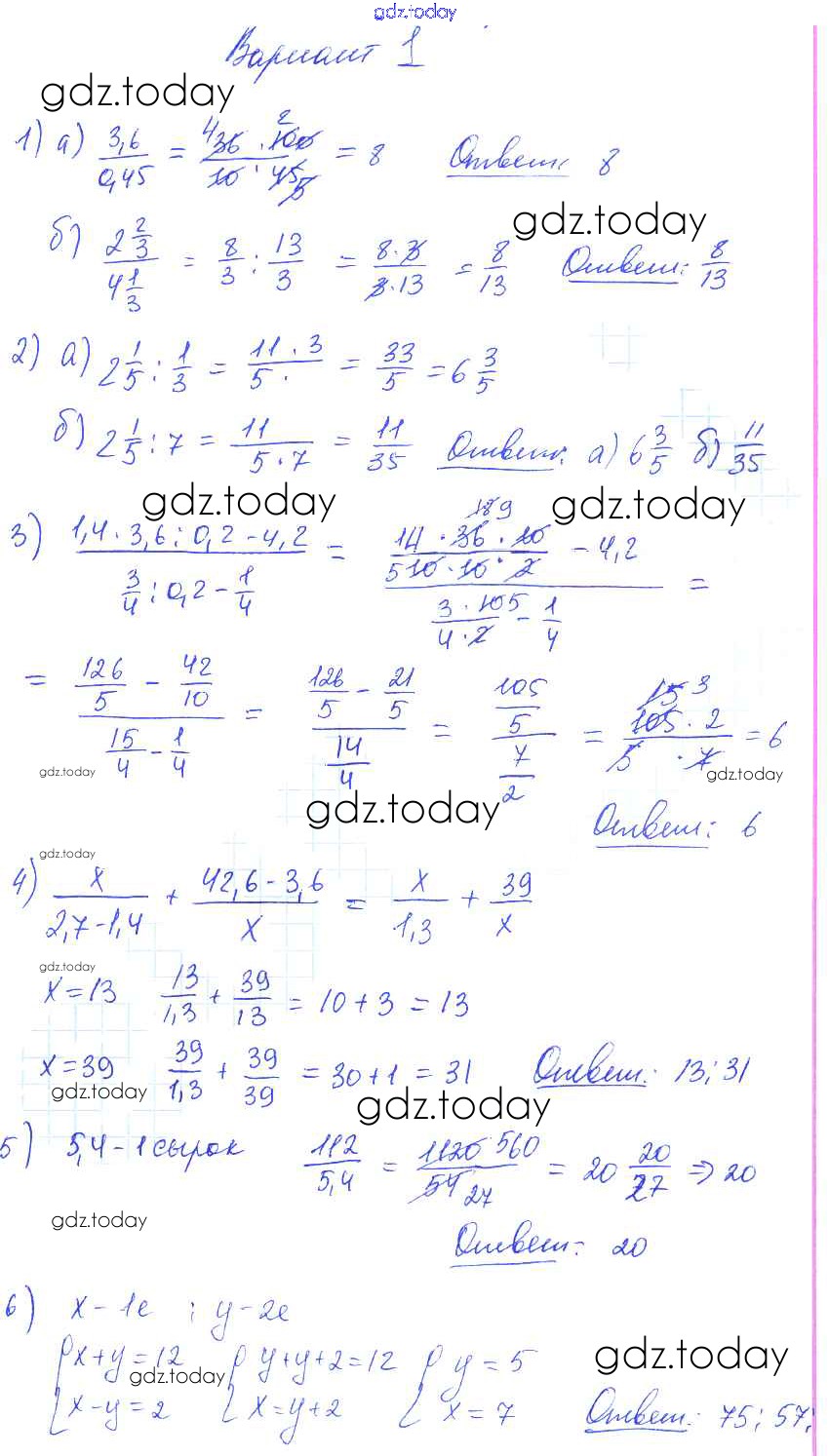 Ответы к СР-19. Варианты Решение к самостоятельным работам 1 Дидактическим материалам по Математике для 6 класса Попов Экзамен УМК 2017