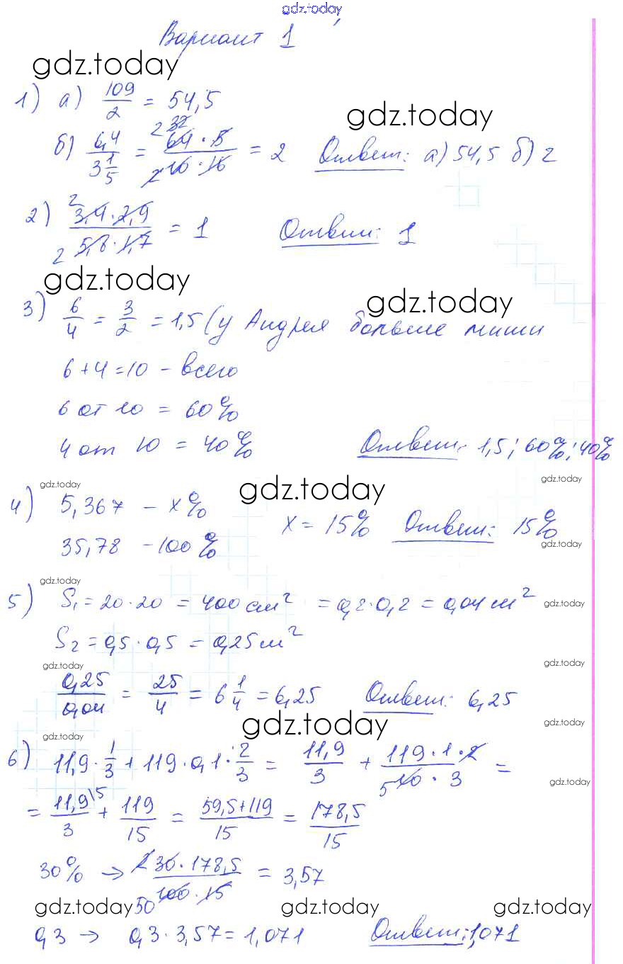 Ответы к СР-20. Варианты Решение к самостоятельным работам 1 Дидактическим материалам по Математике для 6 класса Попов Экзамен УМК 2017