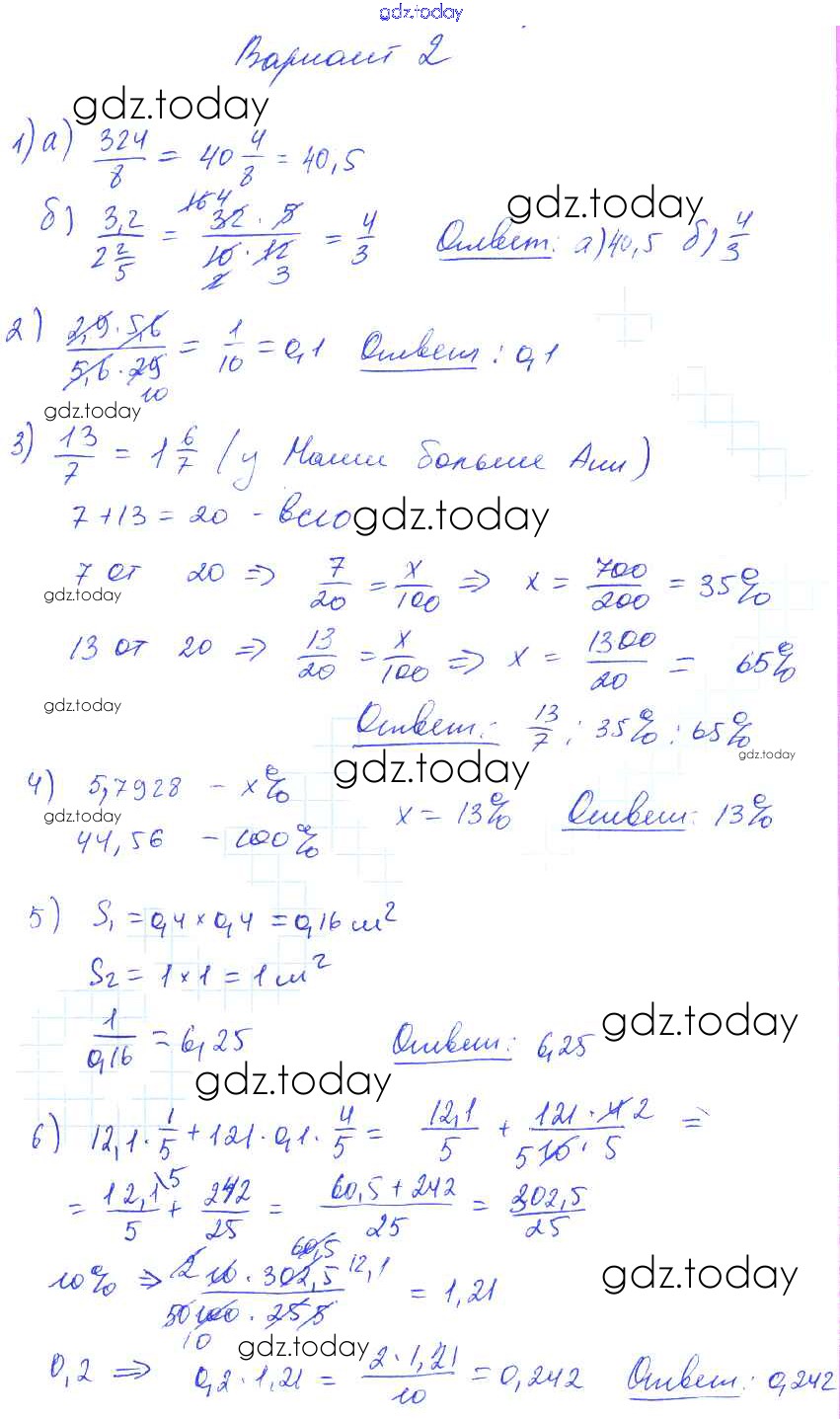 Ответы к СР-20. Варианты Решение к самостоятельным работам 2 Дидактическим материалам по Математике для 6 класса Попов Экзамен УМК 2017