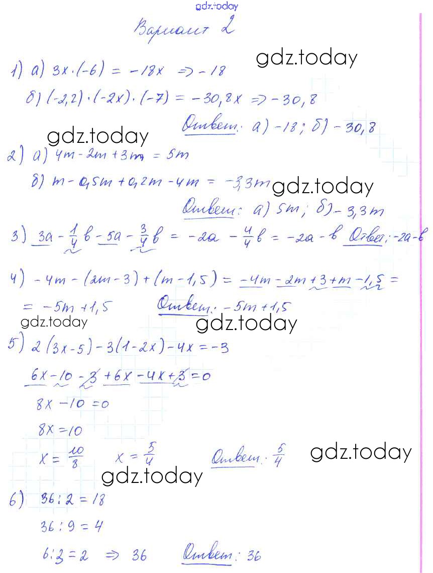Ответы к СР-35. Варианты Решение к самостоятельным работам 2 Дидактическим материалам по Математике для 6 класса Попов Экзамен УМК 2017