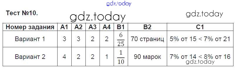 Ответы к Решение к тестам 10 Контрольно-измерительным материалам (КИМ) по Математике для 6 класса Попова ВАКО 2017