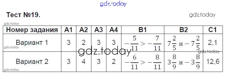 На страницах сайта gdz.today вы найдете учебный и вспомогательный материал, направленный на улучшения знаний школьной программы. ГДЗ - онлайн мир знаний Решение к тестам 19 Контрольно-измерительным материалам (КИМ) по Математике для 6 класса Попова ВАКО 2017