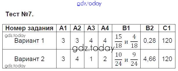 Ответы к Решение к тестам 7 Контрольно-измерительным материалам (КИМ) по Математике для 6 класса Попова ВАКО 2017