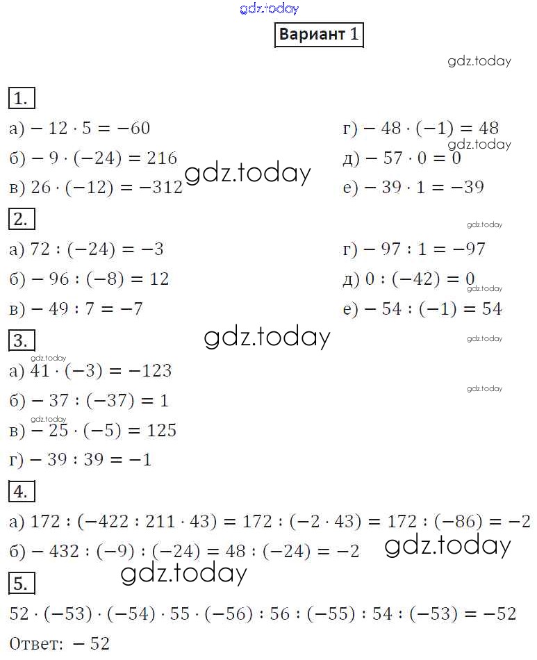 Ответы к СР-10. Варианты Решение к самостоятельным работам 1 Дидактическим материалам по Математике для 6 класса Потапов, Шевкин Просвещение МГУ - школе 2017