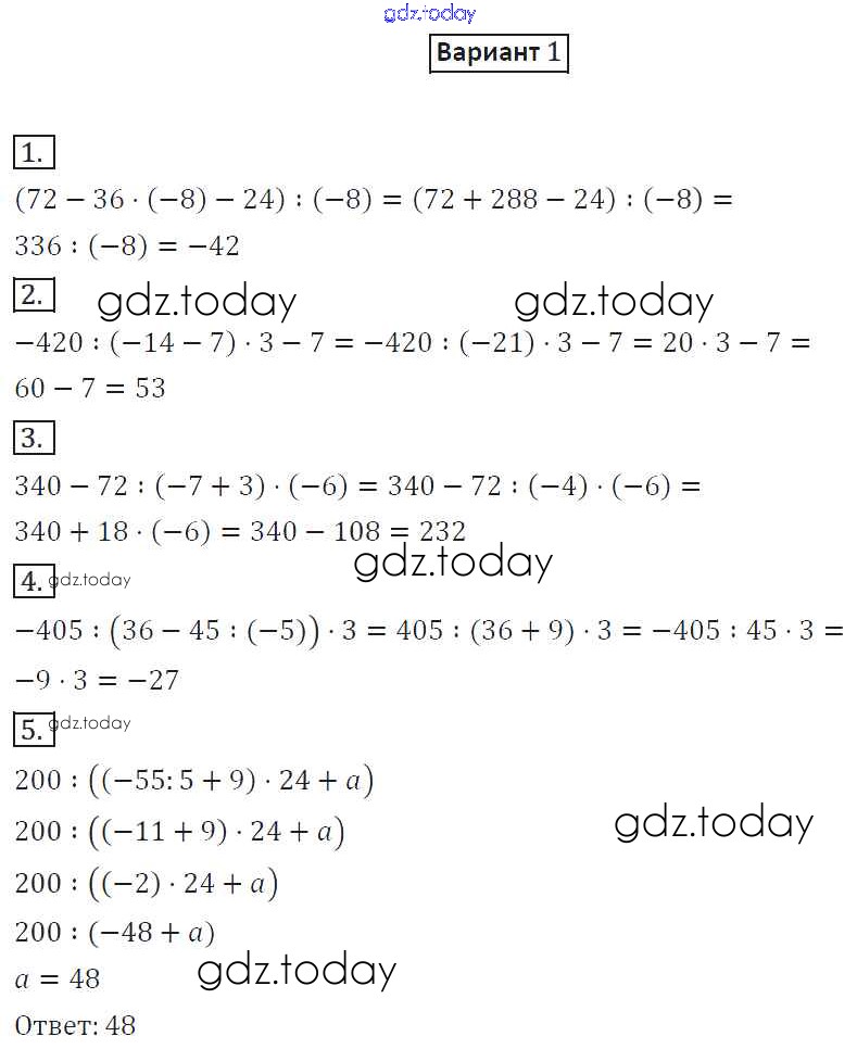Ответы к СР-11. Варианты Решение к самостоятельным работам 1 Дидактическим материалам по Математике для 6 класса Потапов, Шевкин Просвещение МГУ - школе 2017