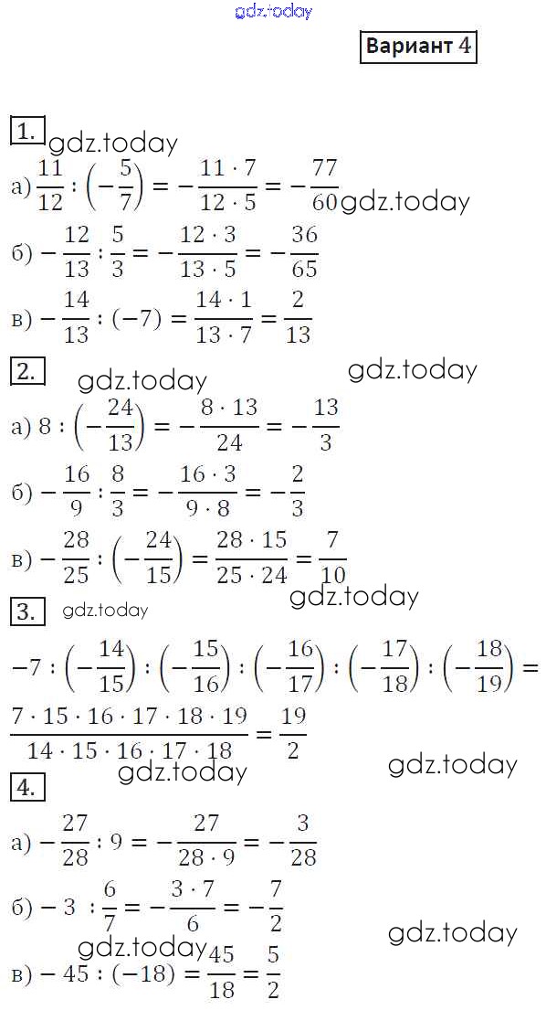 Ответы к СР-18. Варианты Решение к самостоятельным работам 4 Дидактическим материалам по Математике для 6 класса Потапов, Шевкин Просвещение МГУ - школе 2017