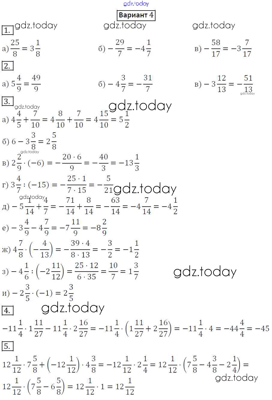 Ответы к СР-19. Варианты Решение к самостоятельным работам 4 Дидактическим материалам по Математике для 6 класса Потапов, Шевкин Просвещение МГУ - школе 2017