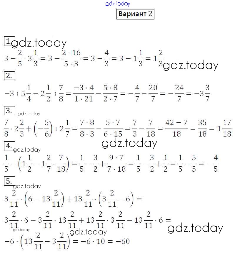 Ответы к СР-20. Варианты Решение к самостоятельным работам 2 Дидактическим материалам по Математике для 6 класса Потапов, Шевкин Просвещение МГУ - школе 2017