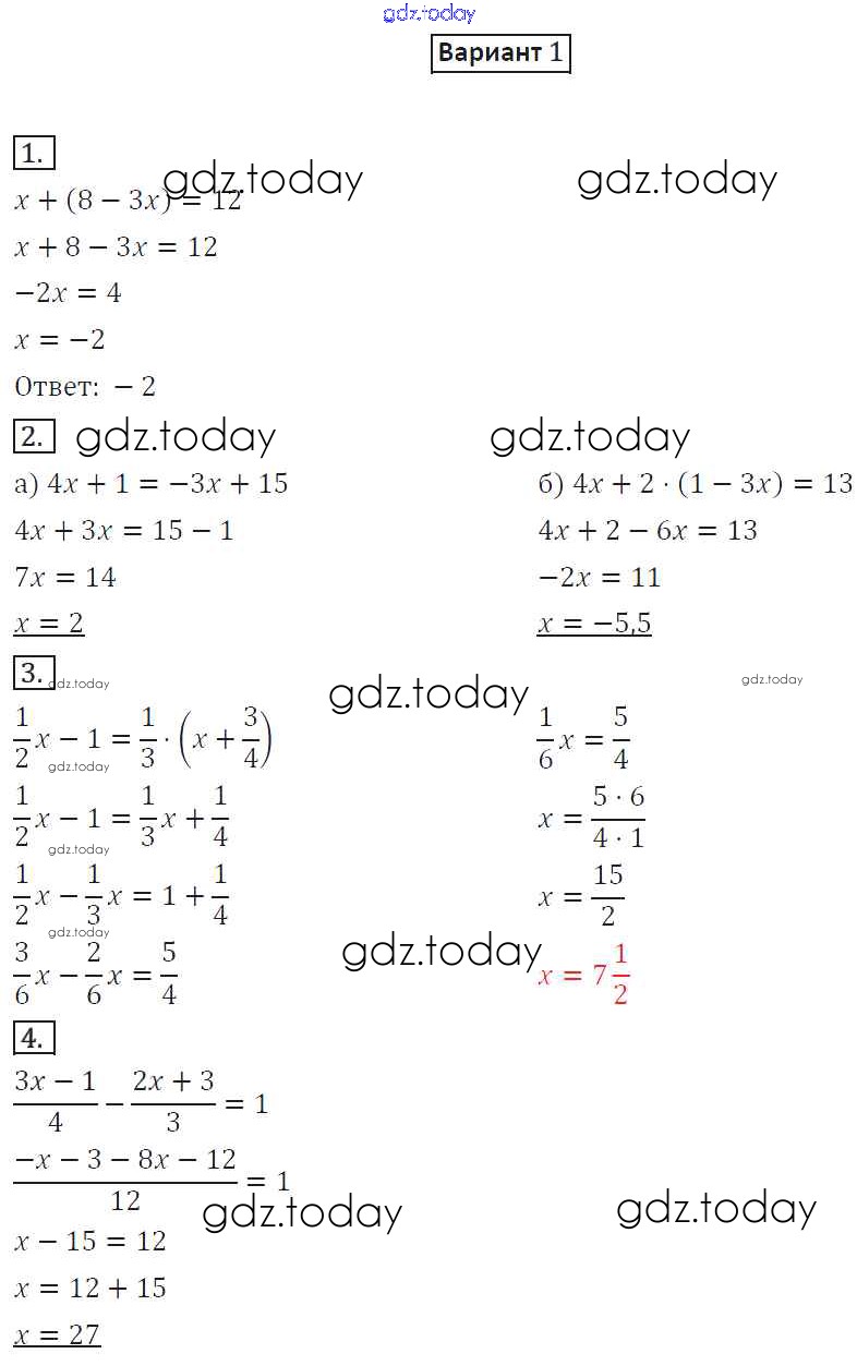 Ответы к СР-22. Варианты Решение к самостоятельным работам 1 Дидактическим материалам по Математике для 6 класса Потапов, Шевкин Просвещение МГУ - школе 2017