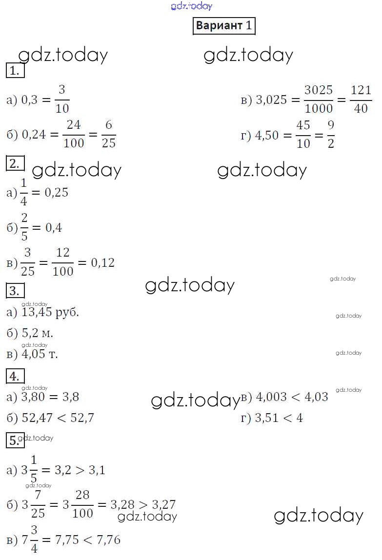 Ответы к СР-26. Варианты Решение к самостоятельным работам 1 Дидактическим материалам по Математике для 6 класса Потапов, Шевкин Просвещение МГУ - школе 2017