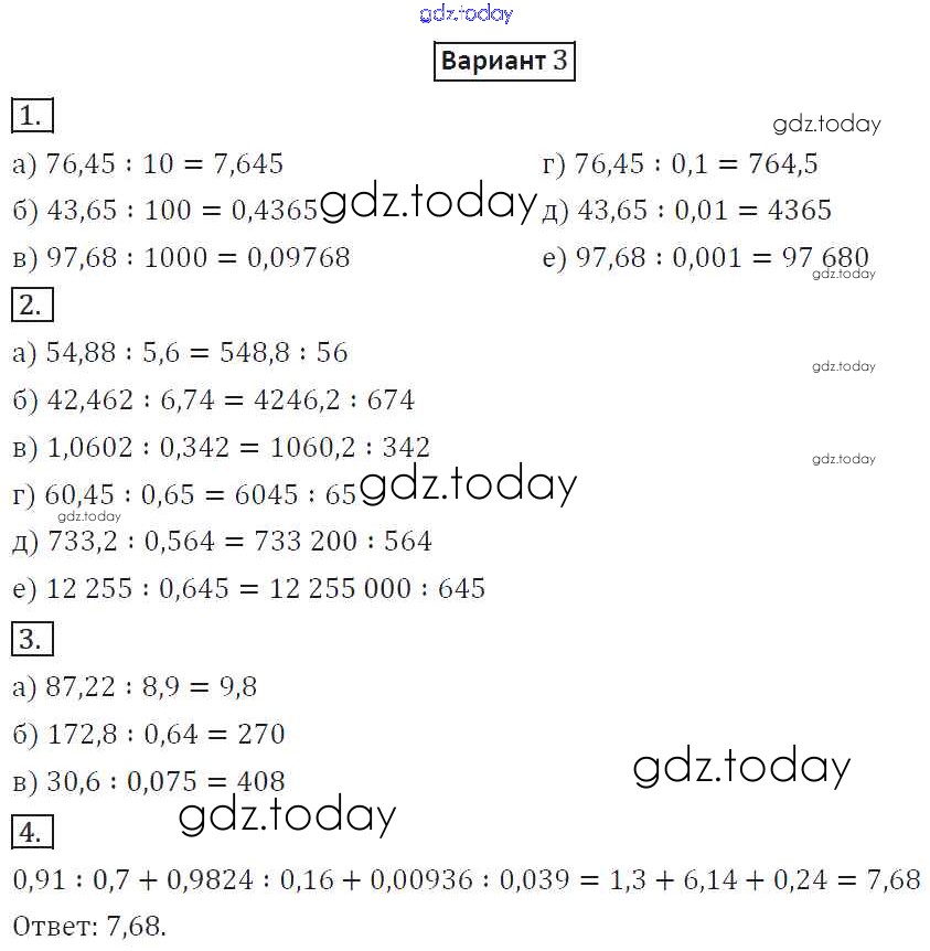 Ответы к СР-29. Варианты Решение к самостоятельным работам 3 Дидактическим материалам по Математике для 6 класса Потапов, Шевкин Просвещение МГУ - школе 2017