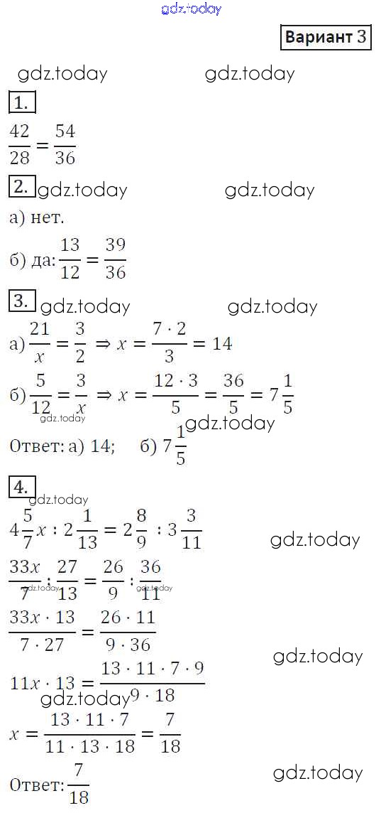 Ответы к СР-3. Варианты Решение к самостоятельным работам 3 Дидактическим материалам по Математике для 6 класса Потапов, Шевкин Просвещение МГУ - школе 2017
