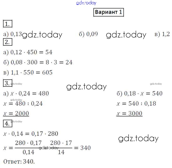 Ответы к СР-30. Варианты Решение к самостоятельным работам 1 Дидактическим материалам по Математике для 6 класса Потапов, Шевкин Просвещение МГУ - школе 2017