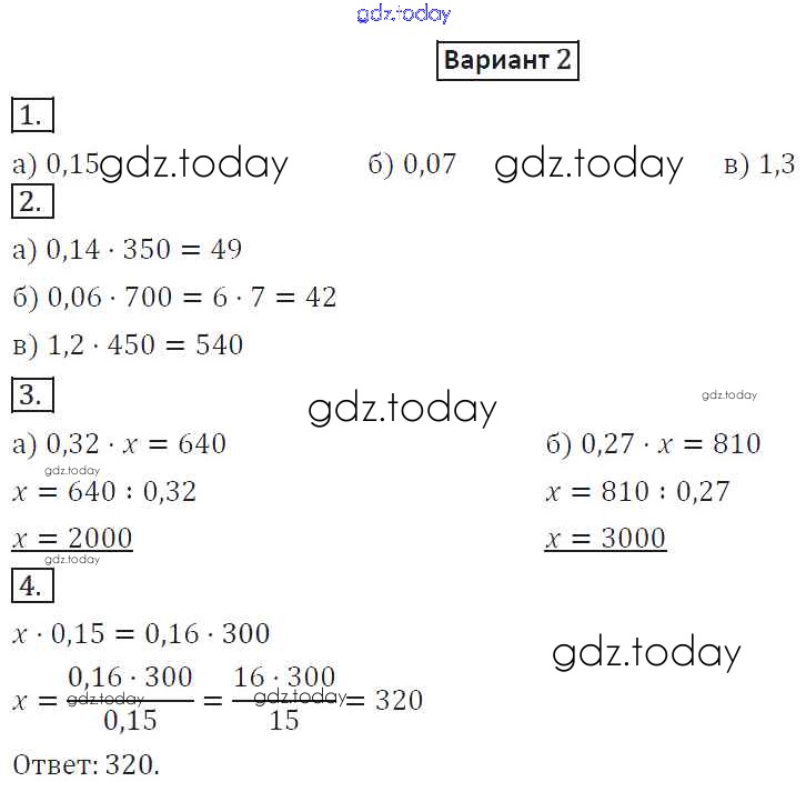 Ответы к СР-30. Варианты Решение к самостоятельным работам 2 Дидактическим материалам по Математике для 6 класса Потапов, Шевкин Просвещение МГУ - школе 2017