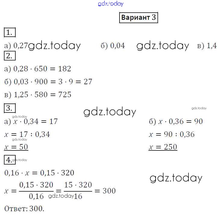 Ответы к СР-30. Варианты Решение к самостоятельным работам 3 Дидактическим материалам по Математике для 6 класса Потапов, Шевкин Просвещение МГУ - школе 2017
