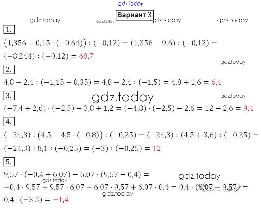 Ответы к СР-34. Варианты Решение к самостоятельным работам 3 Дидактическим материалам по Математике для 6 класса Потапов, Шевкин Просвещение МГУ - школе 2017