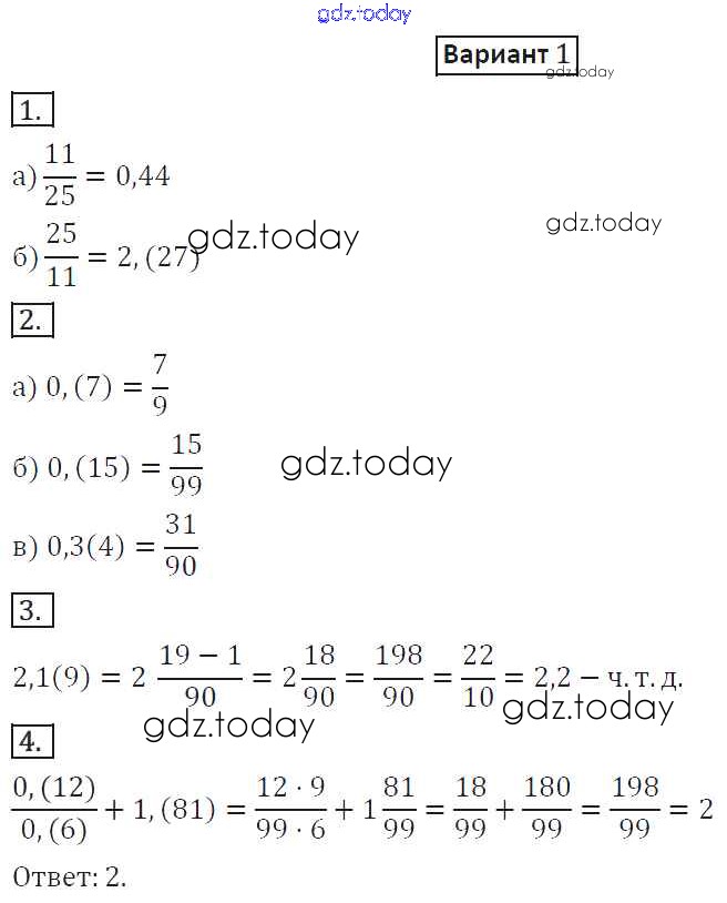 Ответы к СР-38. Варианты Решение к самостоятельным работам 1 Дидактическим материалам по Математике для 6 класса Потапов, Шевкин Просвещение МГУ - школе 2017