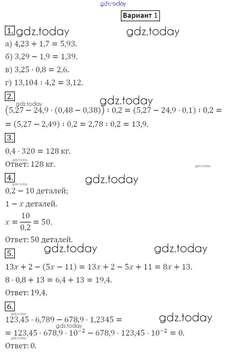 Ответы к КР-6. Варианты Решение к контрольным работам 1 Дидактическим материалам по Математике для 6 класса Потапов, Шевкин Просвещение МГУ - школе 2017