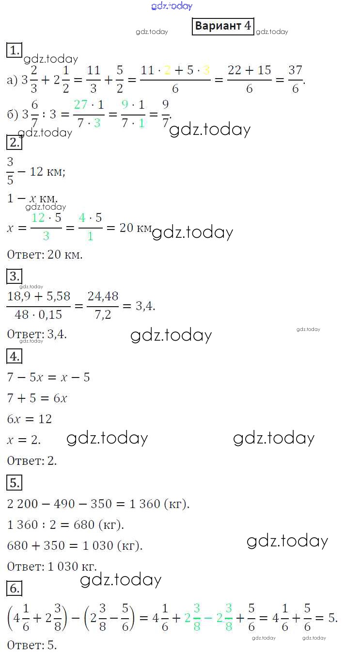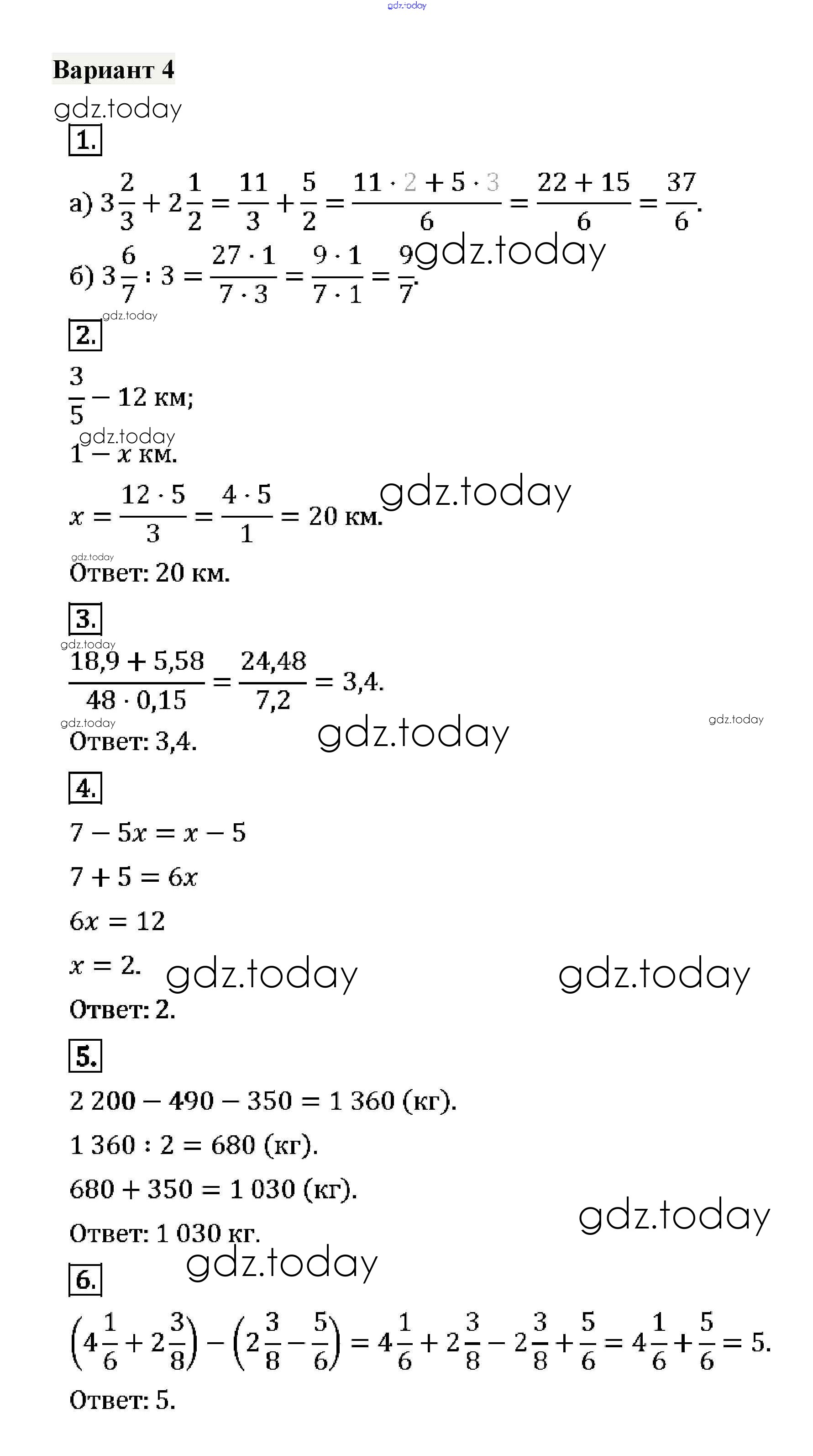 Ответы к КР-9. Варианты Решение к контрольным работам 4 Дидактическим материалам по Математике для 6 класса Потапов, Шевкин Просвещение МГУ - школе 2017