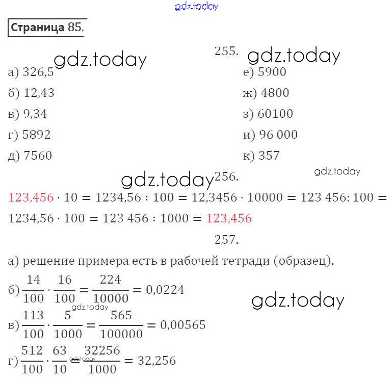 Ответы к Страницы (решение) 85 Рабочей тетради по Математике для 6 класса Потапов, Шевкин Просвещение МГУ - школе 2014