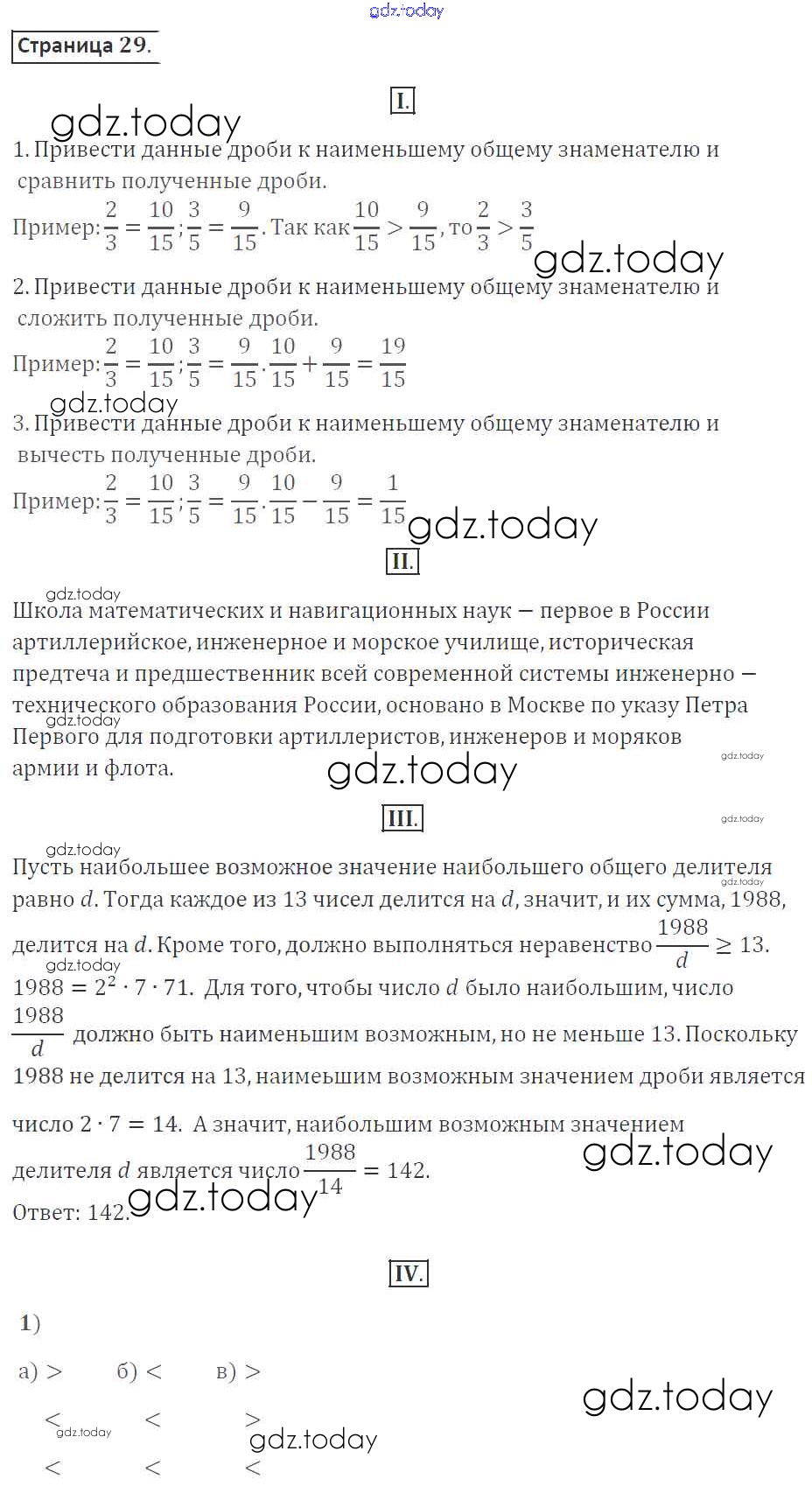 Ответы к Решение к части 1. Страницы 29 Рабочей тетради по Математике для 6 класса Ерина Экзамен УМК 2017