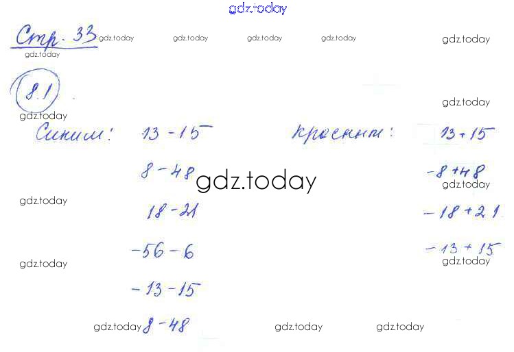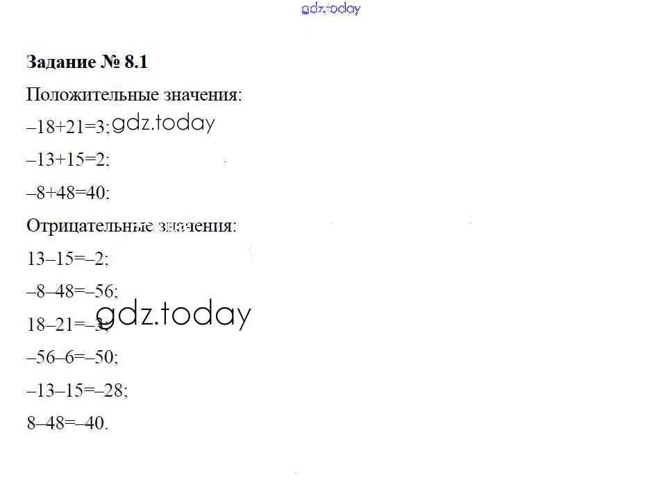 Ответы к Решение. §8. Правило вычисления значения алгебраической суммы двух чисел 1 Рабочей тетради по Математике для 6 класса Зубарева Мнемозина 2016
