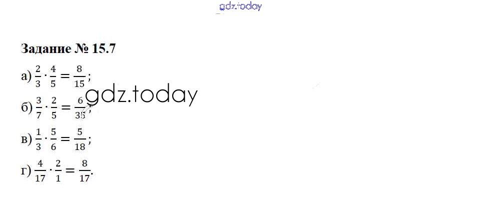 На страницах сайта gdz.today вы найдете учебный и вспомогательный материал, направленный на улучшения знаний школьной программы. ГДЗ - онлайн мир знаний Решение. §15. Умножение и деление обыкновенных дробей 7 Рабочей тетради по Математике для 6 класса Зубарева Мнемозина 2016