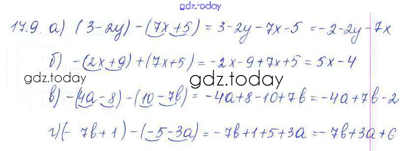 Ответы к Решение. §17. Раскрытие скобок 9 Рабочей тетради по Математике для 6 класса Зубарева Мнемозина 2016