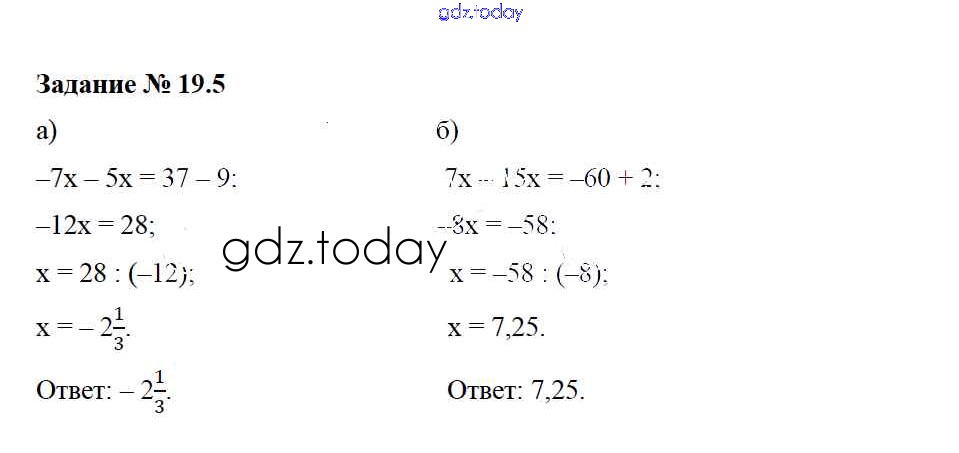На страницах сайта gdz.today вы найдете учебный и вспомогательный материал, направленный на улучшения знаний школьной программы. ГДЗ - онлайн мир знаний Решение. §19. Решение уравнений 5 Рабочей тетради по Математике для 6 класса Зубарева Мнемозина 2016