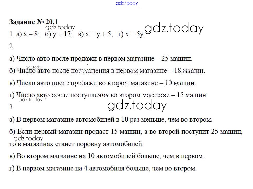 Ответы к Решение. §20. Решение задач на составление уравнений 1 Рабочей тетради по Математике для 6 класса Зубарева Мнемозина 2016