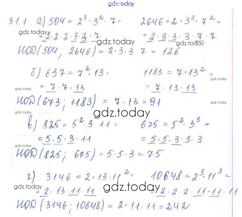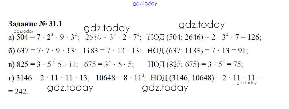 Ответы к Решение. §31. Наибольший общий делитель 1 Рабочей тетради по Математике для 6 класса Зубарева Мнемозина 2016